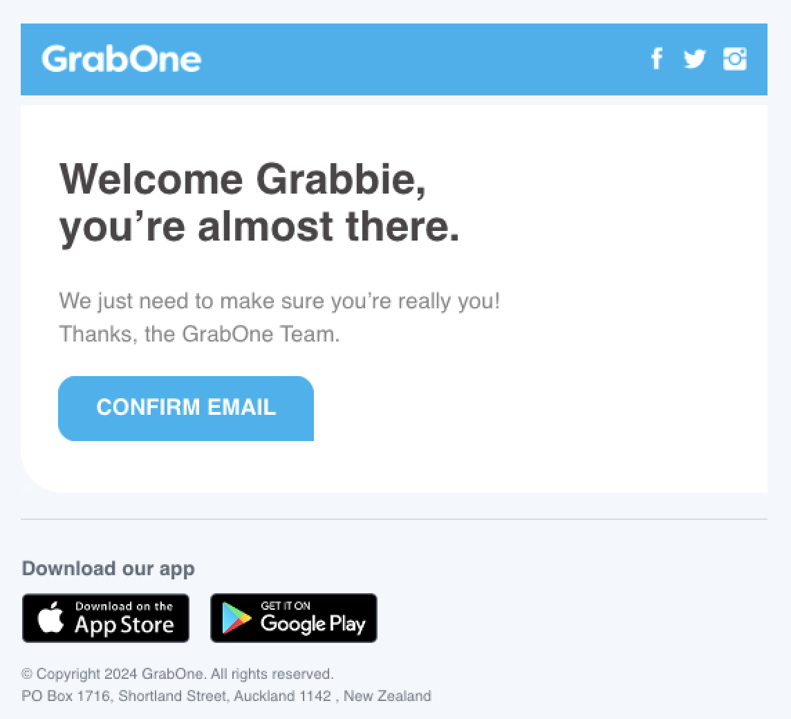 To receive your purchase confirmation and coupons via email, you must verify your email address. After setting up your GrabOne account, you will receive an email prompting you to confirm your email.