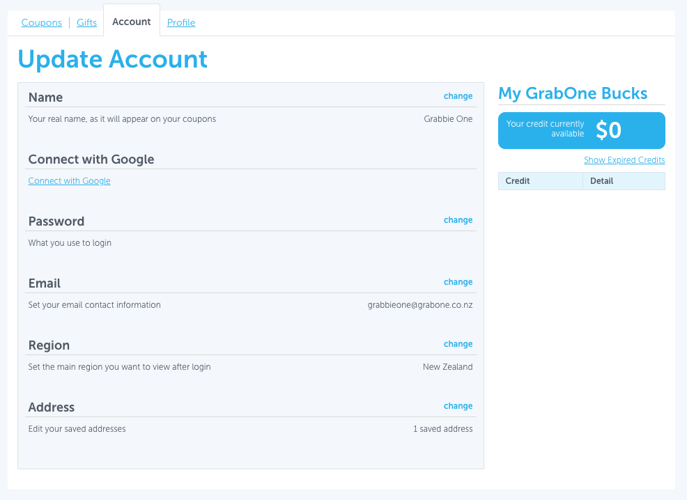 Updating your GrabOne Account Details/Closing GrabOne Account